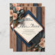 Rustic Wood Navy Blue Blush Pink Geometric Wedding Invitation