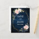 Dark navy blue floral geometric Save the date postcard featuring elegant bouquet of navy blue, royal blue , white , blush rose and sage green eucalyptus leaves and elegant glitter geometric neutral frame. Please contact me for any help in customisation or if you need any other product with this design.