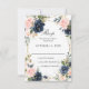 Dark navy blue floral geometric wedding RSVP card featuring elegant bouquet of navy blue, royal blue , white , blush rose and sage green eucalyptus leaves and elegant glitter geometric neutral frame. Please contact me for any help in customisation or if you need any other product with this design.