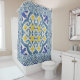 Rustic Wood Old Havana Tile Pattern Painted Blue Shower Curtain