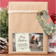Rustic Wood Old Paper Script Merry Christmas Family Photo Sticker. A rustic scene with wood, greenery and old paper with a script on the paper - customise the text and add your photo.