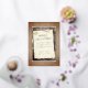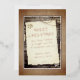 Rustic Wood Old Paper Script Merry Christmas Foil Holiday Card. A rustic scene with wood and old pergament paper with a script on the paper in real rose gold foil - customise the text with your text.