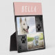 Rustic Wood Paw Print Pet Dog 2 Photo Plaque. This custom pet plaque has 2 photos of a pet, the pet`s name, dog paw prints and a dark wood background. Personalise with your dog or any other pet photos and name. A great keepsake gift for a dog owner.