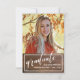 Celebrate your Grad's achievement with this card that features a rustic wood theme, with room for 1 large photo on the front and 4 additional photos on the back side. The word "graduate" is in a casual script and slightly overlays the photo on the front. You also can add your Grad's name, school, and date, or whatever text you'd like on the 2 text lines on the front. On the back you have room to add your event details, Grad's plans, or a favourite quote.