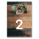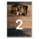 This design features a rustic wood plank background with 2 personal couple's photo. The rustic brown wooden background is complimented by the white text and your personal photo which is displayed as secured on the wooden background with rustic rusted bolts. The brown tones of the wood grain create a rustic country barn like garden feel. Elegant wedding table number design with modern elements. Matching wedding invitations and other stationery items are also available. Customise the number and purchase each tables number individually according to how many table numbers you need.