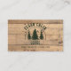 Rustic wood plank and scenic wilderness green forest trees business card design personalised with your custom text. Ideal for cabin, lake house, rustic mountain lodge and vacation home rental property owner or business. Contact the designer via Zazzle Chat or makeitaboutyoustore@gmail.com if you'd like a design modified or on another product.