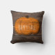 Rustic Wood Pumpkin Halloween Fall Home Decor Pillow.