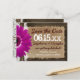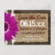 Rustic Country Barn Wood and Lace Print Purple Magenta Gerber Daisy Save the Date Postcards with cute handwritten text font and large numbers for the wedding date. Reads "Save the Date. [Date] Bride and Groom are getting hitched. [location of wedding] Formal invitation to follow". Both sides of the postcard have a distressed dark barn wood background with printed lace and printed twine bow and a distressed paper design. The front has the purple gerbera daisy on the side. Just add your wedding details to the template. The back has your return address and a spot to address the postcard to your guests. These are great for rustic country weddings and barn weddings