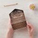 All in one wedding invitation featuring a hand-drawn floral garland and chic typography on a rustic wood panels background. The invitation includes a perforated RSVP with your wedding website QR code and details. Designed by Thisisnotme©