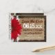 Rustic Country Barn Wood and Lace Print Red Gerber Daisy Save the Date Postcards with cute handwritten text font and large numbers for the wedding date. Reads "Save the Date. [Date] Bride and Groom are getting hitched. [location of wedding] Formal invitation to follow". Both sides of the postcard have a distressed dark barn wood background with printed lace and printed twine bow and a distressed paper design. The front has the red gerbera daisy on the side. Just add your wedding details to the template. The back has your return address and a spot to address the postcard to your guests. These are great for rustic country weddings and barn weddings