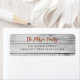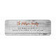 Grey barn wood rustic personalised Christmas holiday mailings return address label with red handwritten calligraphy script.