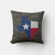 Throw pillow with a rustic wood background and red white and blue Texas, coordinating back. Add your own message to the back or leave blank. View all of our decor in our Zazzle store!