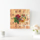 This clock is designed with a vintage wood pattern with rose floral accents.