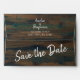 Rustic Dark Wood Script Save the date and Return Address Wedding envelope. Rustic dark wood background and the text is in white colour. Personalise the envelope with the bride`s and groom`s names and the address. You can change or erase the Save the date text. Great for your wedding, engagement and save the date mailing.