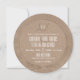 A rustic yet sophisticated wood slice, perfect for the round die cut, mixes rustic kraft paper textures with fresh white contrasts to create a rustic modern romance.