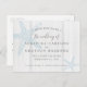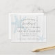 Rustic beach wedding save the date postcard with a light wood background and dusty blue periwinkle vintage starfish design and elegant fonts.