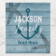 Rustic and elegant blue wood design. Starfish stamp overlay with anchor solid graphic. Custom family name in bold sans serif font and chic script family typography. All text is adjustable. Beautiful design for beach house, vacation home, boat, or nautical themed home decor.