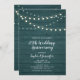 Celebrate your special day with this rustic wood wedding anniversary party invitation! This design features a stylish script typography and light strings on a green tone rustic wood background. You can customise it for any occasions like a birthday party, retirement party, or corporate parties.