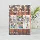 Happy Holiday rustic wood background with string lights background that can be customised with 6 photos.
