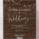 Rustic Wooden Boards Background with Beautiful String Lights Wedding Invitation. QR Code Individual Guest Names and Addresses Wedding All In One Invitation. PLEASE NOTE no envelope is necessary for this practical all in one invitation and RSVP.  Add your QR code to your wedding website as a convenient option for your guests to RSVP or they can use the tear off section to post their reply back to you if they prefer. Your QR code will be automatically generated to update the sample code in the design, when you simply change the sample URL in the template with your own wedding website URL.