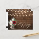 Rustic Wood String Lights Burgundy Floral RSVP Postcard