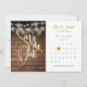 This elegant rustic save the date card features a chic gold script save the date on rustic wood panels and string lights background, plus a calendar and pretty gold love heart highlighting your special date. Designed by Thisisnotme©