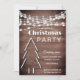 Rustic wood string lights Christmas tree Christmas party invitation design.