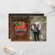 Rustic wood and string lights. Cute red truck with a Christmas tree and Merry Christmas, replace the photo with your own cute couple snap or family photo.