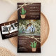 Amaze your guests with this elegant all in one wedding invite featuring beautiful cactus pots and hanging string lights against a rustic barn wood background. Simply add your event details on this easy-to-use template and adorn this card with your favourite photos to make it a unique personalised one-of-a-kind invitation.