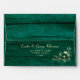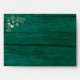 Elegant, modern, country rustic barn wood green 5x7 envelope for wedding invitations with return address, string lights and gold floral lace.
