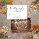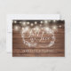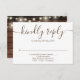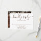 A rustic RSVP card with your details set in chic typography and personalised with your names and hand-drawn floral foliage and string lights on a rustic wood panels background on the reverse. Designed by Thisisnotme©