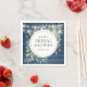 Featuring pretty string lights and delicate watercolor greenery leaves on a rustic blue wood background, this chic botanical bridal shower napkin can be personalised with your special bridal shower information. Designed by Thisisnotme©
