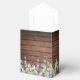 A rustic wedding favour box featuring delicate sage and lilac watercolor leaves, string lights and mason jars on a wood panels background. You can personalise with your own thank you message on the reverse. A perfect way to say thank you to your guests! Designed by Thisisnotme©