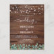 Invite friends and family to your wedding with these elegant yet rustic wood with string lights and eucalyptus greenery wedding invitation cards. These unique rustic county wedding invitations feature elegant white string lights on barn wood with with botanical greenery design with with botanical greenery design with wedding website qr code for easy RSVP's... Personalise these rustic wedding invitations with names, wedding date, and location. See our wedding collection for unique wedding invitations, wedding photo albums, guest books, party gifts, and more! COPYRIGHT © 2020 Judy Burrows, Black Dog Art - All Rights Reserved. Rustic Wood String Lights Greenery QR Code Wedding Invitation Postcard