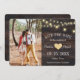 Rustic Wood String Lights Heart Photo Wedding Save the Date Card.