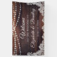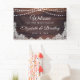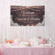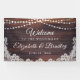 Welcome guests to a wedding (or other wedding event like reception, bridal shower, couple shower, etc. since all text is editable ) with this banner sign featuring rustic wood, string lights and white lace for a country, barn, vintage or outdoor wedding. Contact the designer via Zazzle Chat or makeitaboutyoustore@gmail.com if you'd like this design modified, on another product or coordinating items.