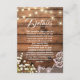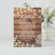 Complete your rustic wedding theme with our charming "Rustic Wood String Lights & Lace Wedding Details Enclosure Card". This delightful card features rustic wood accents, twinkling string lights, and intricate lace details, capturing the essence of rustic romance. Add important details such as accommodation information, wedding website, or special instructions to ensure your guests have all the information they need. Don't miss out on this opportunity to create a cohesive and beautifully coordinated wedding stationery set. Shop now and let your rustic wedding vision come to life!