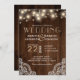 Rustic Wood String Lights Lace Wedding Invitation
