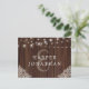 Rustic Wood String Lights Lace Wedding RSVP Postcard