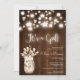 A cool, rustic fall autumn It's a girl baby shower. With string light fairy lights, and stars, a glowing mason jar with wild flowers on rustic brown wood , with a hand lettered glowing boho calligraphy.