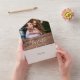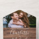 All in one photo wedding invitation with pretty string lights, mason jars, signature style names and chic typography on a rustic wood background. The invitation includes a perforated RSVP card that can be individually addressed or left blank for you to handwrite your guest's address details. Designed by Thisisnotme©