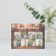 Happy Holiday rustic wood background with string lights background that can be customized with 8 photos postcard.