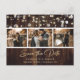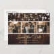 Custom rustic wood wedding photo save the date postcards featuring a photo collage against a rustic wood background adorned with string lights. Easily personalise this rustic wood photo save the date postcard with your images and wedding details including a wedding website, if desired. For custom requests, please send us a message.