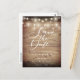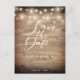 Rustic Wood String Lights Script Save the Date Postcard