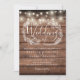 A rustic wedding invitation featuring pretty string lights and a delicate hand-drawn rustic floral garland of botanical leaf foliage with stylish script typography, on a rustic wood background. Personalise with your special wedding day information. Designed by Thisisnotme©