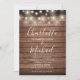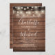 A stylish rustic wedding invitation featuring pretty string lights, signature style names and chic typography on a rustic wood background. Designed by Thisisnotme©