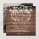 Rustic Wood String Lights Square Photo Wedding Invitation
