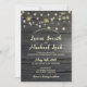 Rustic casual wedding invitation design features vintage lanterns hung over the strings of lights against a charcoal /dark grey barn wood backdrop. Can easily be altered to suit your other celebration needs by changing the wording. Thanks for viewing.