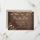 Announce your special day with our elegant, modern rustic wood Save the Date invitation, a perfect choice for fall weddings. Adorned with gold gilded floral lace and charming string lights, this invitation exudes warmth and sophistication.