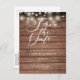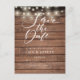 Rustic Wood String Lights Wedding Save the Date Postcard